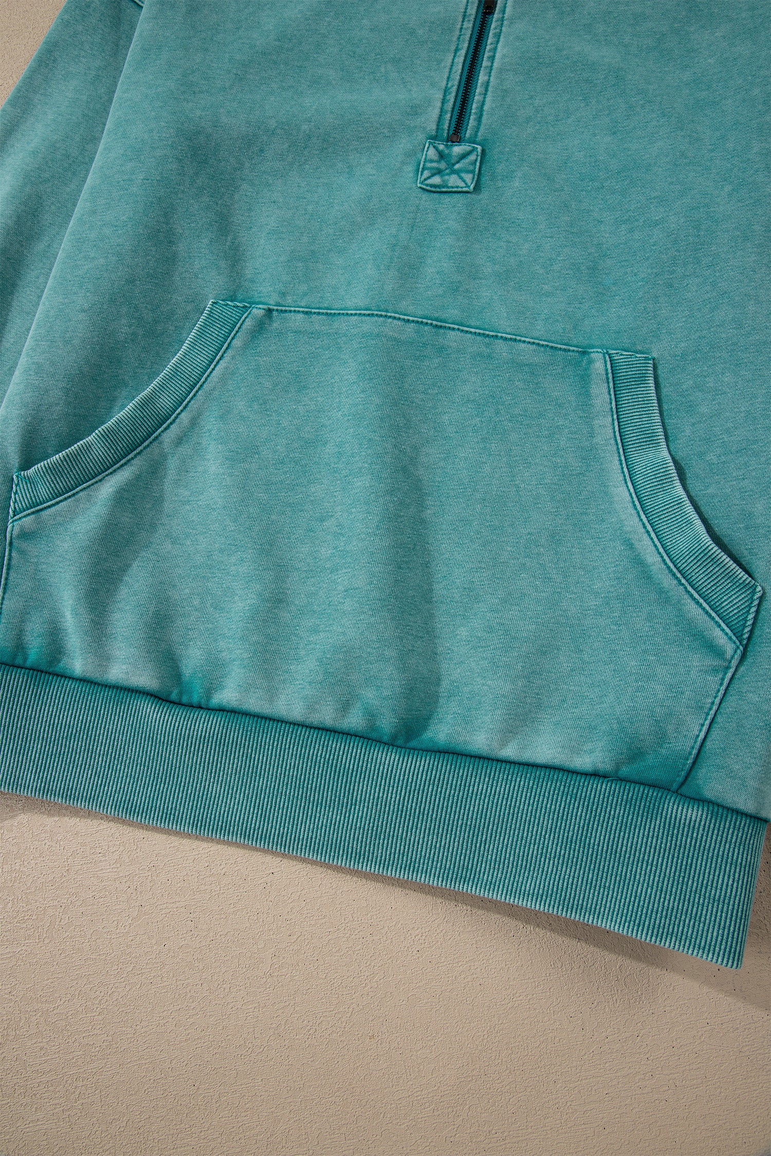 Canton Half Zip Kangaroo Pocket Mineral Wash Baggy Hoodie